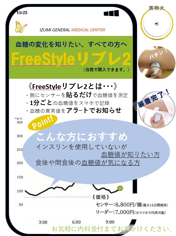 ~血糖の変化を知りたい、すべての方へ~FreeStyleリブレ2を当院で購入することができます。